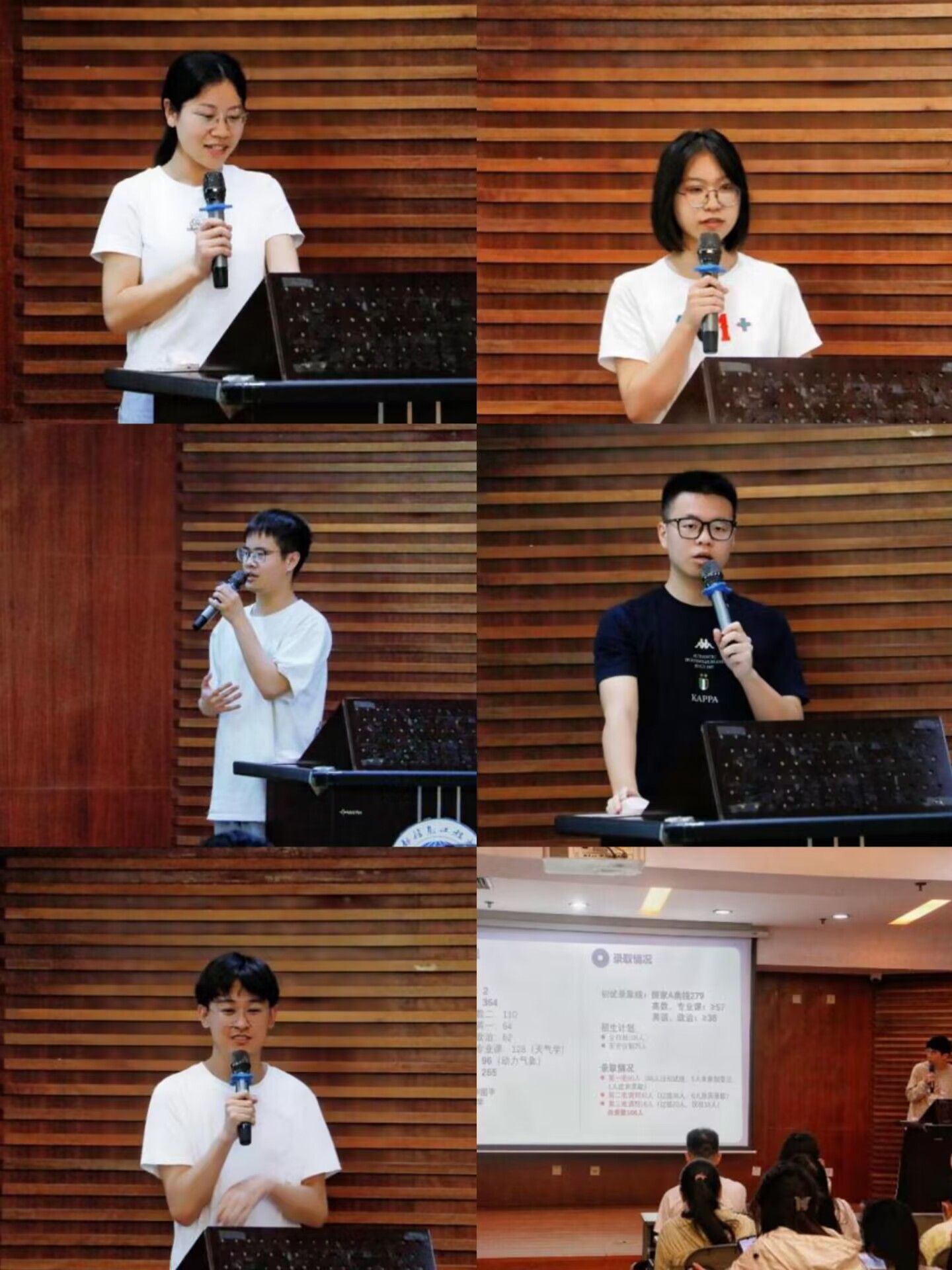 2019级考研学生代表谭怡宁、杨雪梅、张梓恒、宋星涛、邱玉骋、石浩垣、许一洲为同学们带来了他们宝贵的考研经验分享。他们分享了自己在考研期间的困惑和疑虑,告诉大家确立明确的目标并为之奋斗。随后,他们从查看考试大纲到明确考研复习安排,根据自己的目标院校详细阐述不同学校的备考方法、推荐书籍及学习网站,并建议同学们夯实基础,及时回顾学习内容,有计划、高效地备考复习。此外,在学习之余,学长学姐们也建议同学适当放松自己,调整自己的心态,积极面对考研。最后预祝同学们取得好成绩,成功录取到自己理想的院校。