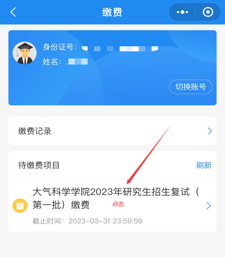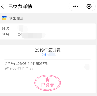 复试报到时,登陆本缴费程序,向资格审查的工作人员出具缴费记录,如图6所示。