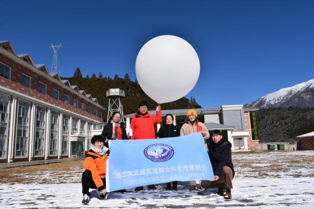 为深入研究青藏高原地气相互作用过程及其影响天气气候的机理,本次科考在林芝藏东南站和乐山四峨山站同时开展为期一周、每天4次的探空观测试验。常规探空通常是指使用无线电探空仪升空,施放胶乳膨胀型气球,探空气球在空中以300~500米/分钟的速度上升,荷载质量为1~2千克,探测高度在0~40千米,包括大气边界层和自由大气,在测风速、风向的同时测量空中的温度、气压和湿度。获取的观测数据可用于刻画大气垂直廓线信息、研究青藏高原及其附近地区大气及边界层变化、地气相互作用过程研究、验证卫星资料准确性、检验青藏高原大气数值预报模式,还可为数值预报模式的改进提供数据支撑。