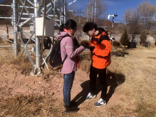 科考队成员在大气边界层廓线塔站收集数据