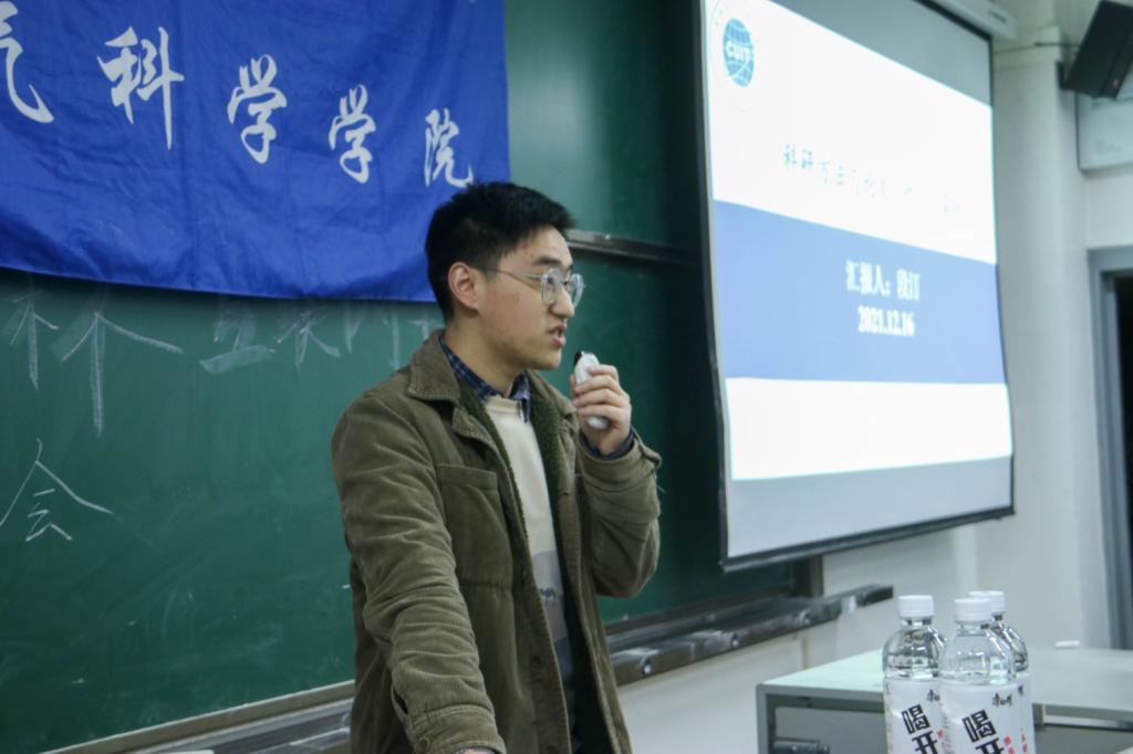 付智龙从资料的收集和论文投稿两个方面进行具体的介绍。资料收集方面,他向同学们推荐了与大气科学研究相关的网站、公众号以及学报期刊,拓展了同学们收集资料的渠道;论文投稿方面,他详细介绍了一篇论文投稿以及投稿后审稿的过程,告诉同学们在修改论文及投稿论文的注意事项,使同学们对一篇论文的写作和投稿有更好的了解。