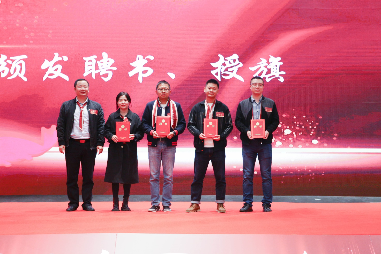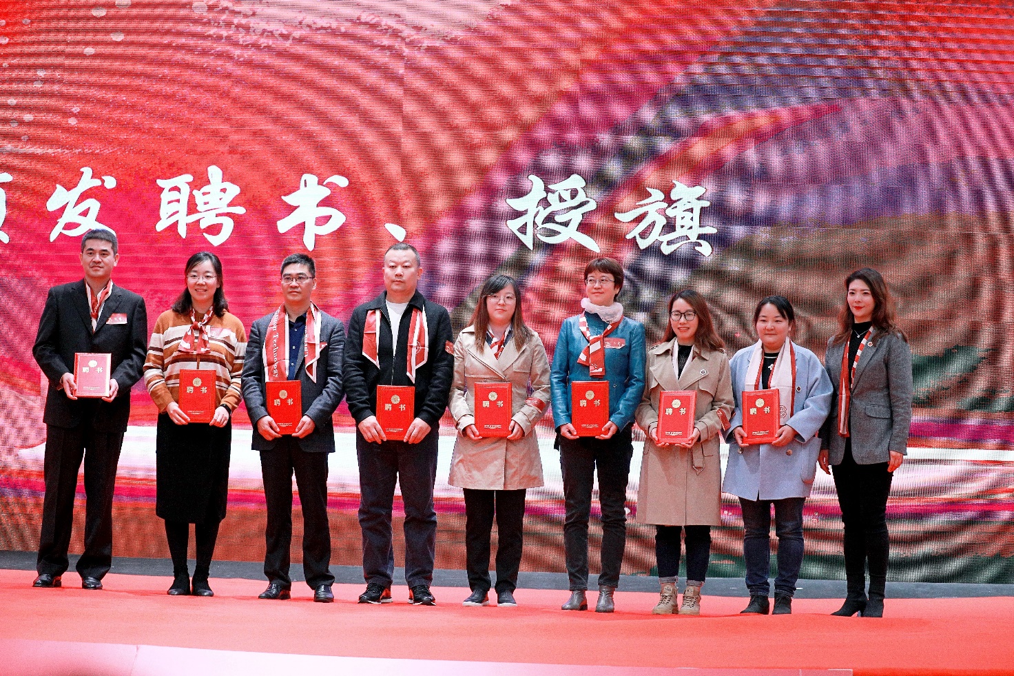 之后,曾胜兰为常务理事、理事颁发聘书,华维为秘书长、副秘书长颁发聘书,刘琰琰为副会长颁发聘书,张宇为会长颁发聘书,张小红为校友会授旗。