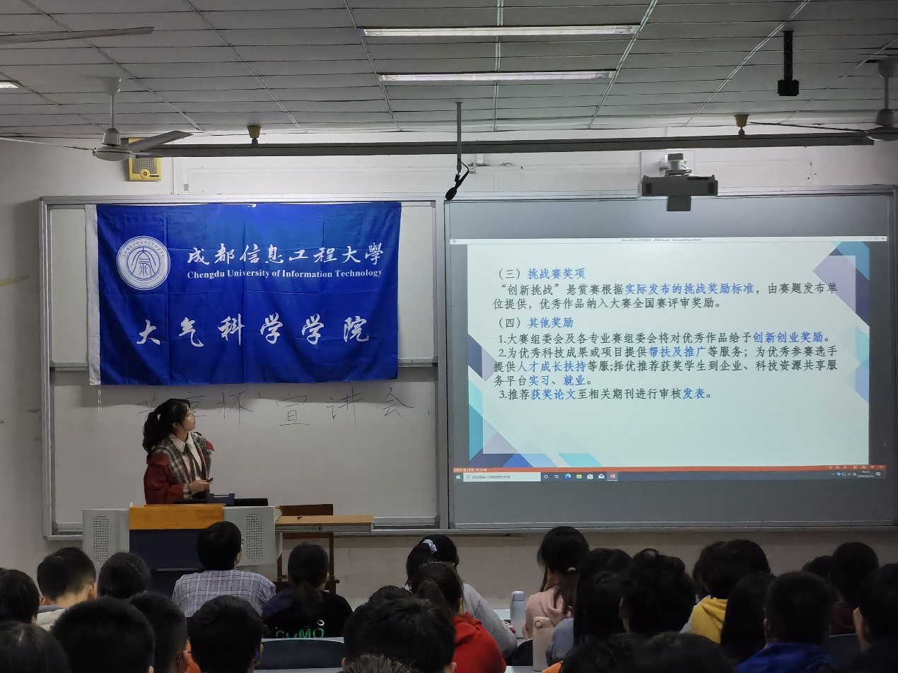 本次宣讲会由石文清从大赛主题、大赛赛道及其他比赛项目、大赛作品及要求、大赛奖项及奖励、报名及作品提交及大赛官方服务平台等六个部分进行详细讲解。随后,罗才桂向同学们讲述了各年级学生参加大赛的意义,同时鼓励同学们积极关注本次大赛。宣讲过程中同学们认真聆听、学习,并在宣讲会结束后积极做出提问。