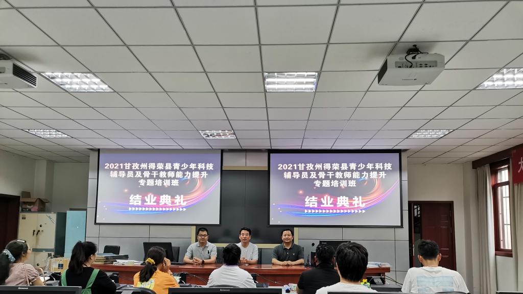 承办的2021年甘孜州得荣县青少年科技辅导员及骨干教师能力提升专题培训班顺利结业,结业典礼于在航空港校区气象楼101室举行,KS体育官网