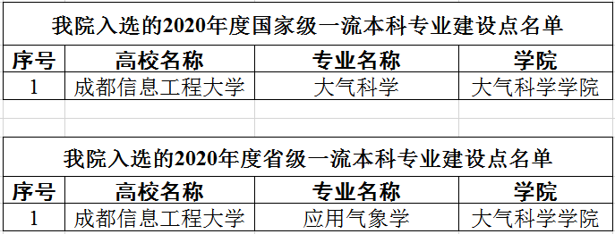 近日,教育部办公厅印发《关于公布2020年度国家级和省级一流本科专业建设点名单的通知》(教高厅函〔2021〕7号),经网上申报、主管部门审核,教育部高等学校教学指导委员会评议、投票推荐,我院大气科学专业入选国家级一流本科专业建设点。同时,经省级教育行政部门审核、推荐,我院应用气象学专业入选省级一流本科专业建设点。