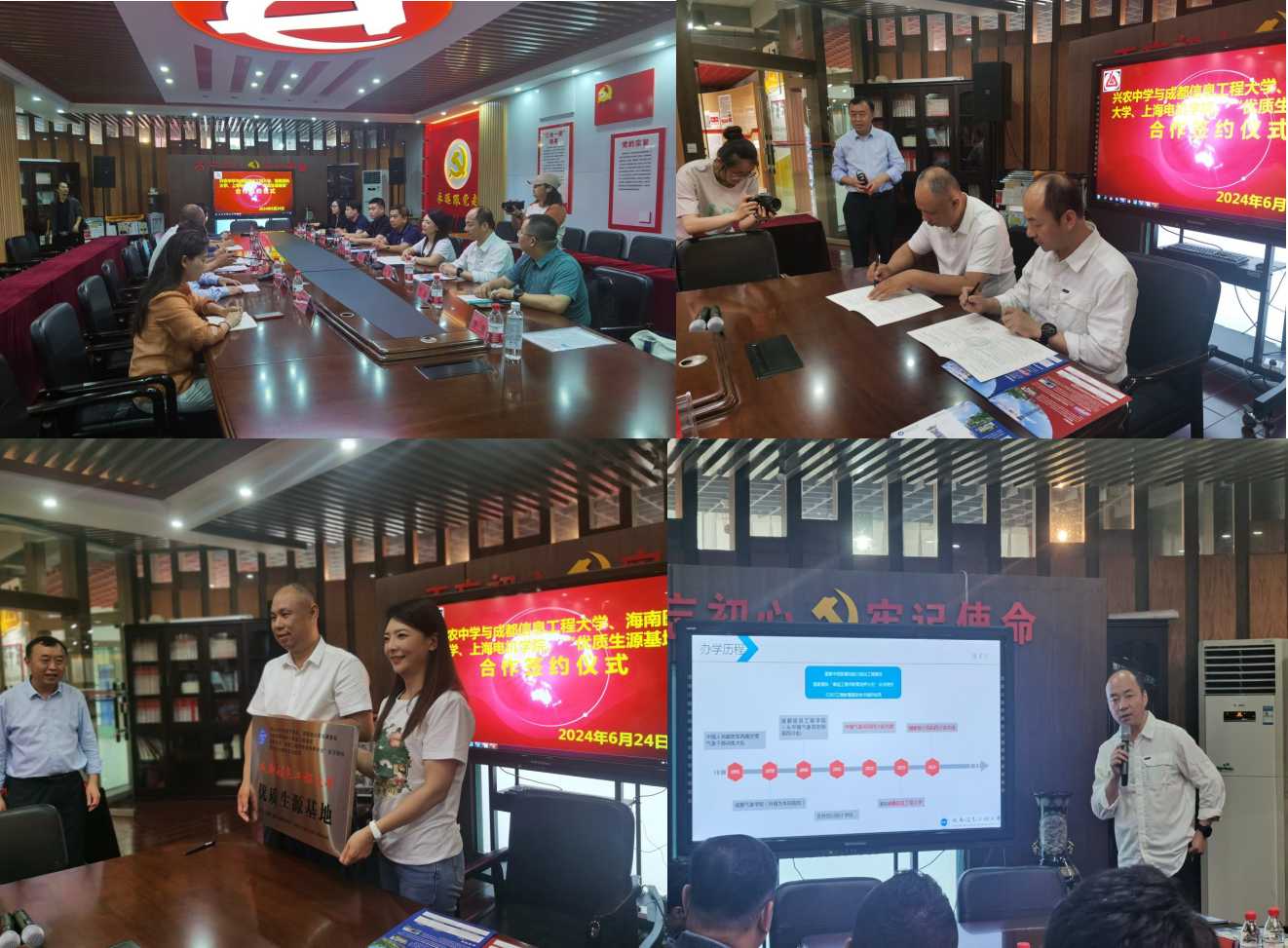 张宇代表学校与兴农中学签订《优秀生源基地协议书》,他全面介绍了学校概况、专业设置、人才培养、招生政策等,并针对新高考改革、生源输送等方面进行了深入探讨,在中学生学科竞赛、专业学科教育等方面达成合作共识。