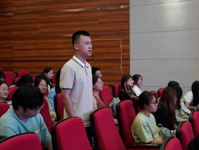 在互动环节,同学们积极踊跃,就台风预报难点、专业就业方向、科研入门方法等方面存在的疑惑,向许映龙首席提问。许首席结合自身多年的工作经验,耐心细致地逐一解答,并给出了切实可行的专业建议。他的回答不仅为同学们指明了学习和研究的方向,更让大家感受到了气象领军人物的严谨治学态度和无私奉献精神。