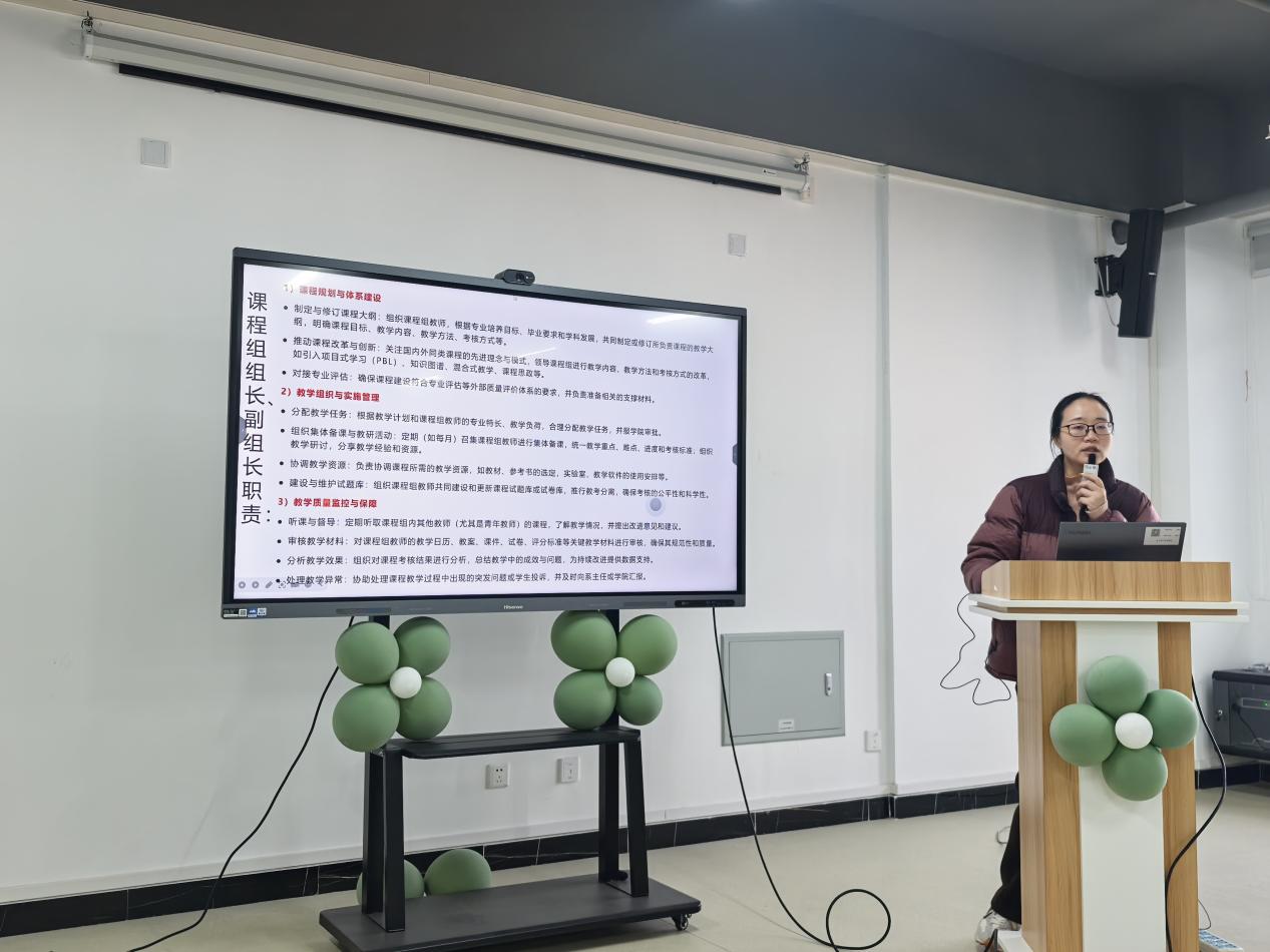 会上,副院长曾胜兰系统阐述了本轮课程大纲修订的主要方向和目标,明确了“以专业前沿为牵引、以课程群逻辑优化为主线”的修订思路,进一步厘清了课程群与课程组在内容衔接、知识递进与教学协同中的职责分工。