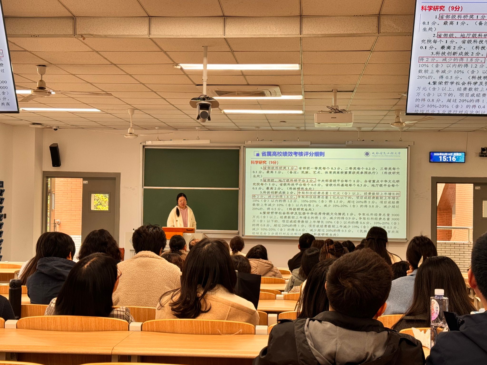 副院长陈科艺对省属高校绩效考核评分细则、“双一流”建设绩效评分细则、登峰计划及项目申报等方面进行了解读。