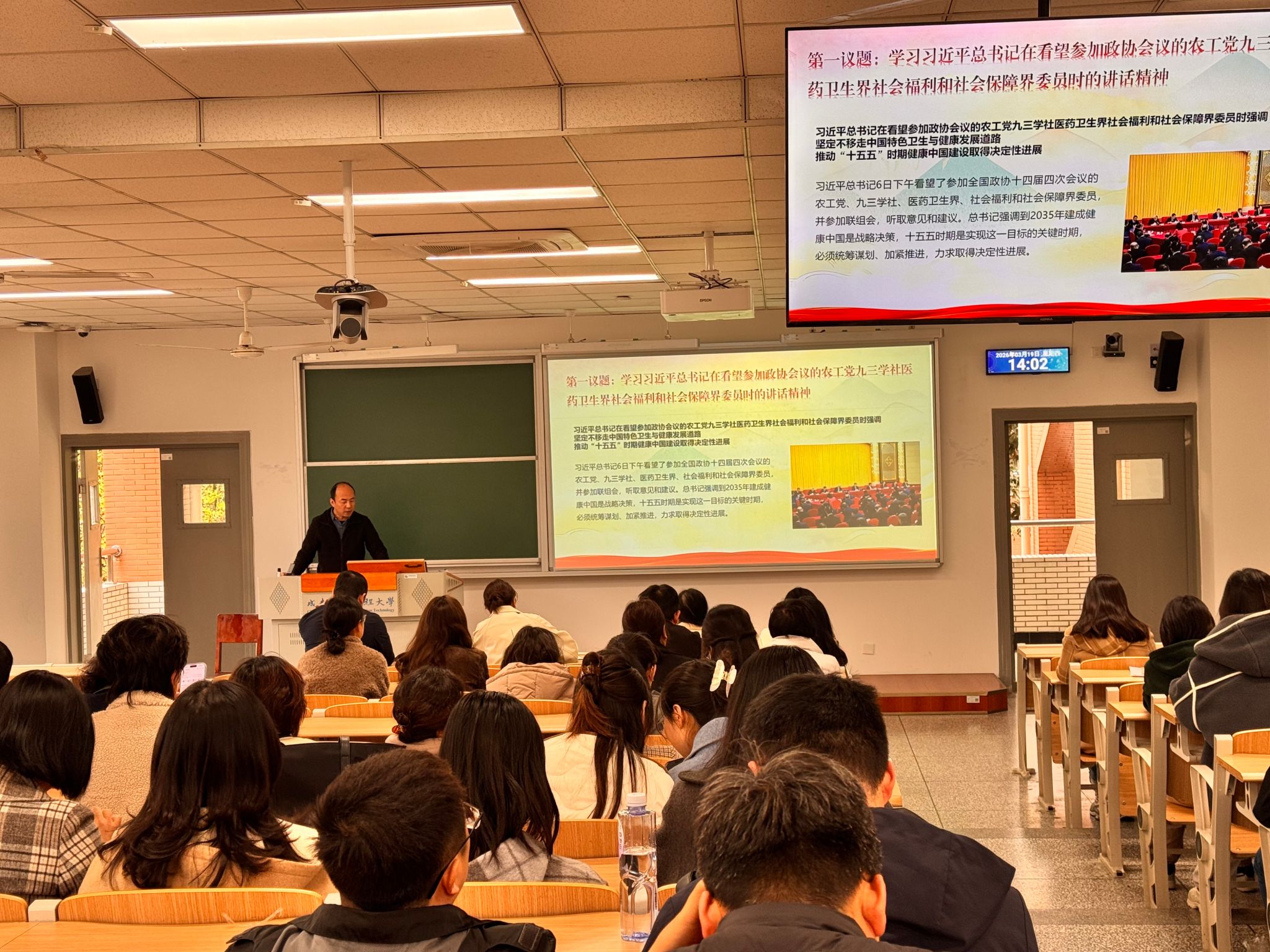 党委书记张宇领学了习近平总书记在看望参加全国政协会议的农工党、九三学社、医药卫生界、社会福利和社会保障界委员时的重要讲话精神。会议强调,要深入学习贯彻习近平总书记重要讲话精神,坚定不移走中国特色卫生与健康发展道路,推动“十五五”时期健康中国建设取得决定性进展。接下来,张宇传达了关于开展树立和践行正确政绩观学习教育的通知精神。他指出,要坚持个人自学与集中学习相结合,通过理论学习中心组学习、专题研讨等方式,组织党员、干部深入学习领会习近平总书记重要论述的深刻内涵和实践要求;要通过党员大会、支委会等载体,扎实开展学习交流,并将《习近平总书记地方工作期间坚持正确政绩观生动实践》作为重要学习材料,增强学习的针对性和实效性。最后,通报了KS体育