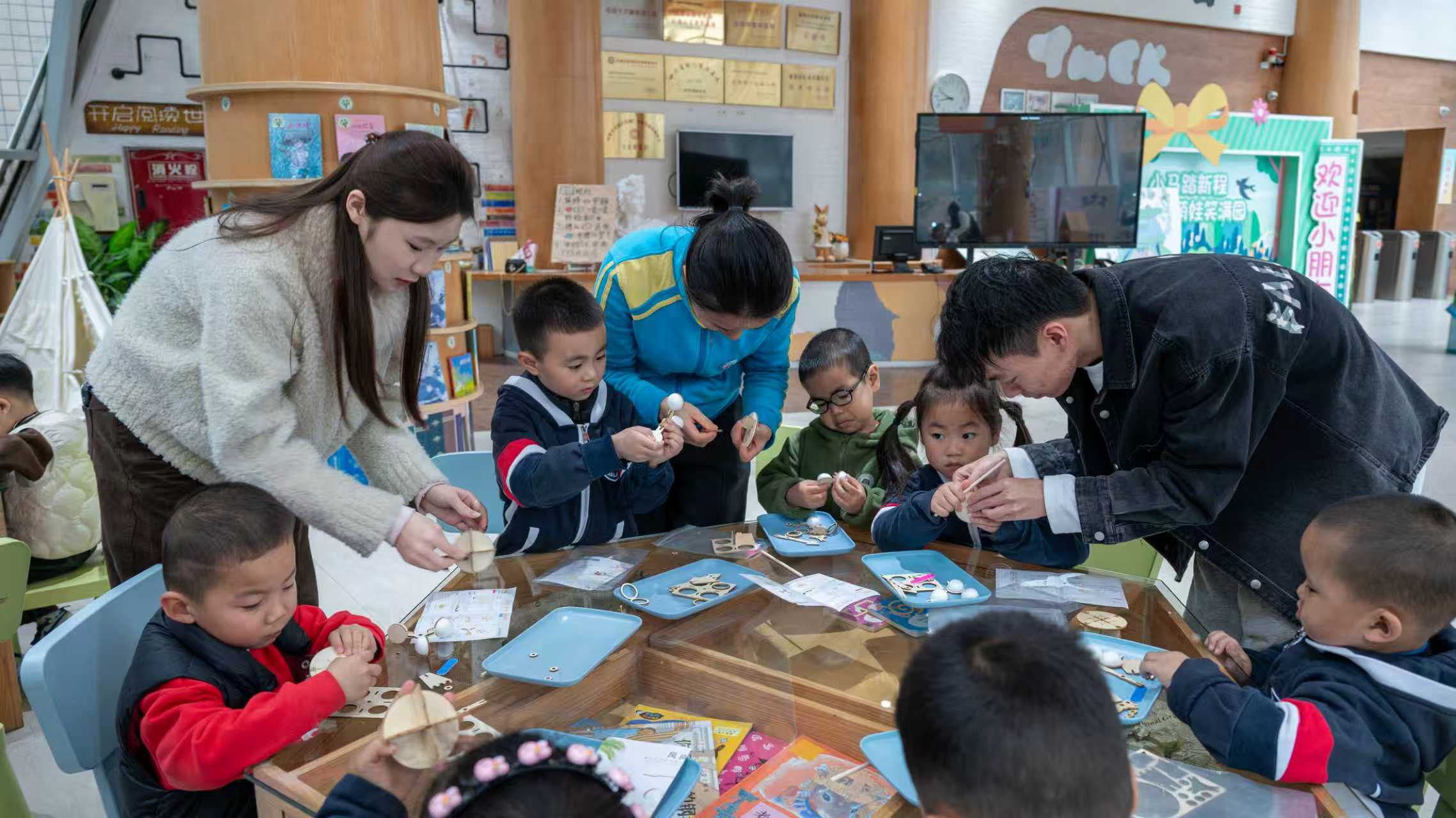 活动最后,志愿者们带领小朋友们动手制作简易风向标。在耐心指导下,孩子们认真组装,完成了一个个精巧的小作品,脸上洋溢着自豪的笑容。活动在集体合影中圆满结束。