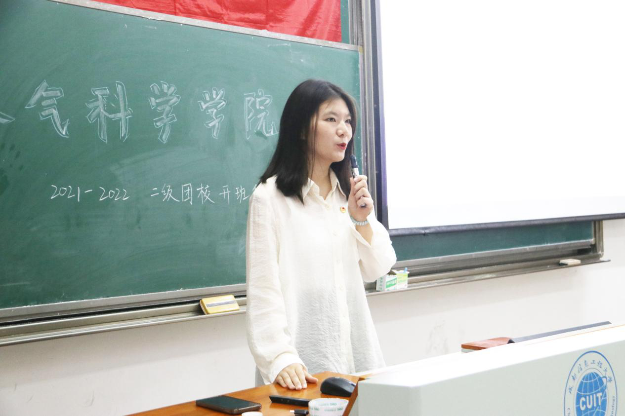 此外,介佳琪为大家介绍团的基础团务工作。她讲解了团的组织制度,明确了团徽、团旗、团歌的规范使用,介绍了新发展团员的条件,并向给同学们阐述了团学活动的重要意义。