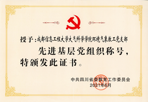环境气象教工党支部被中共四川省委教育工作委员会评为“先进基层党组织”。