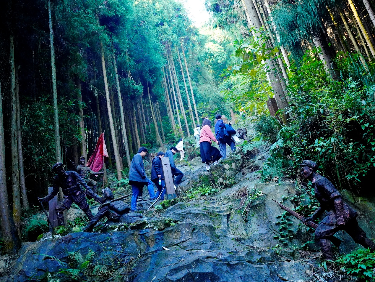 党委书记张宇带领下,师生党员重走长征路,全体党员沿着蜿蜒曲折、崎岖不平的山林小径步履不停,每一步都饱含着对红军战士崇高精神的敬仰与追随。张宇强调,今日的幸福生活来之不易,同志们要始终铭记革命先辈们不畏牺牲、勇往直前的伟大精神,从革命传统中汲取前行的力量,培育出更多有理想、有担当的时代新人。