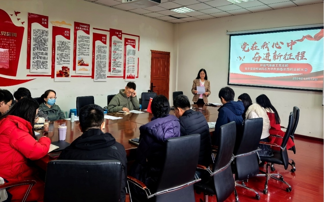 环境气象教工党支部于2024年12月12日在气象楼310召开支部大会,集中学习党的二十届三中全会精神,讨论青年骨干教师修蒙同志入党。会议由支部书记张小玲主持。