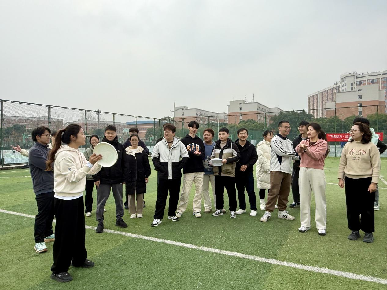 活动在“破冰启航”环节中拉开序幕。随着简短有力的开场热身动员结束,负责老师随即开展了飞盘基础技巧教学。紧接着,“姓名传递”的破冰游戏迅速打破了初识的拘谨,让博士与硕士党员们在欢声笑语中快速熟络起来。