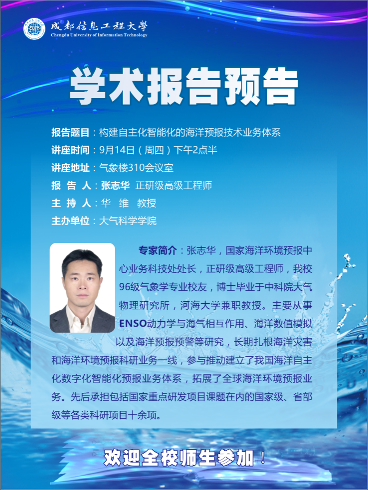 【学术报告预告】构建自主化智能化的海洋预报技术业务体系