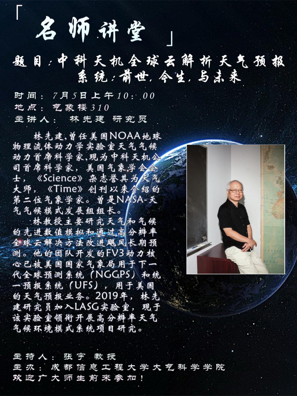 【校庆70周年学术会议预告】林先建:中科天机全球云解析天气预报系统:前世、今生与未来