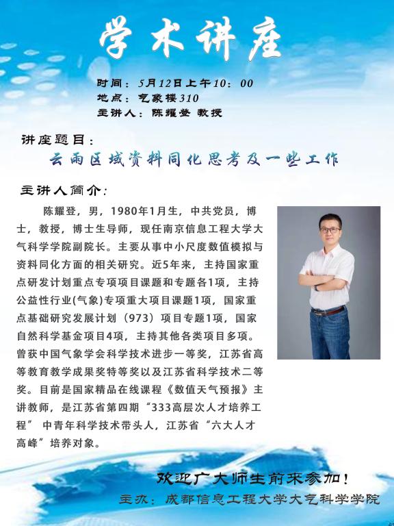 【学术讲座预告】云雨区域资料同化思考及其一些工作