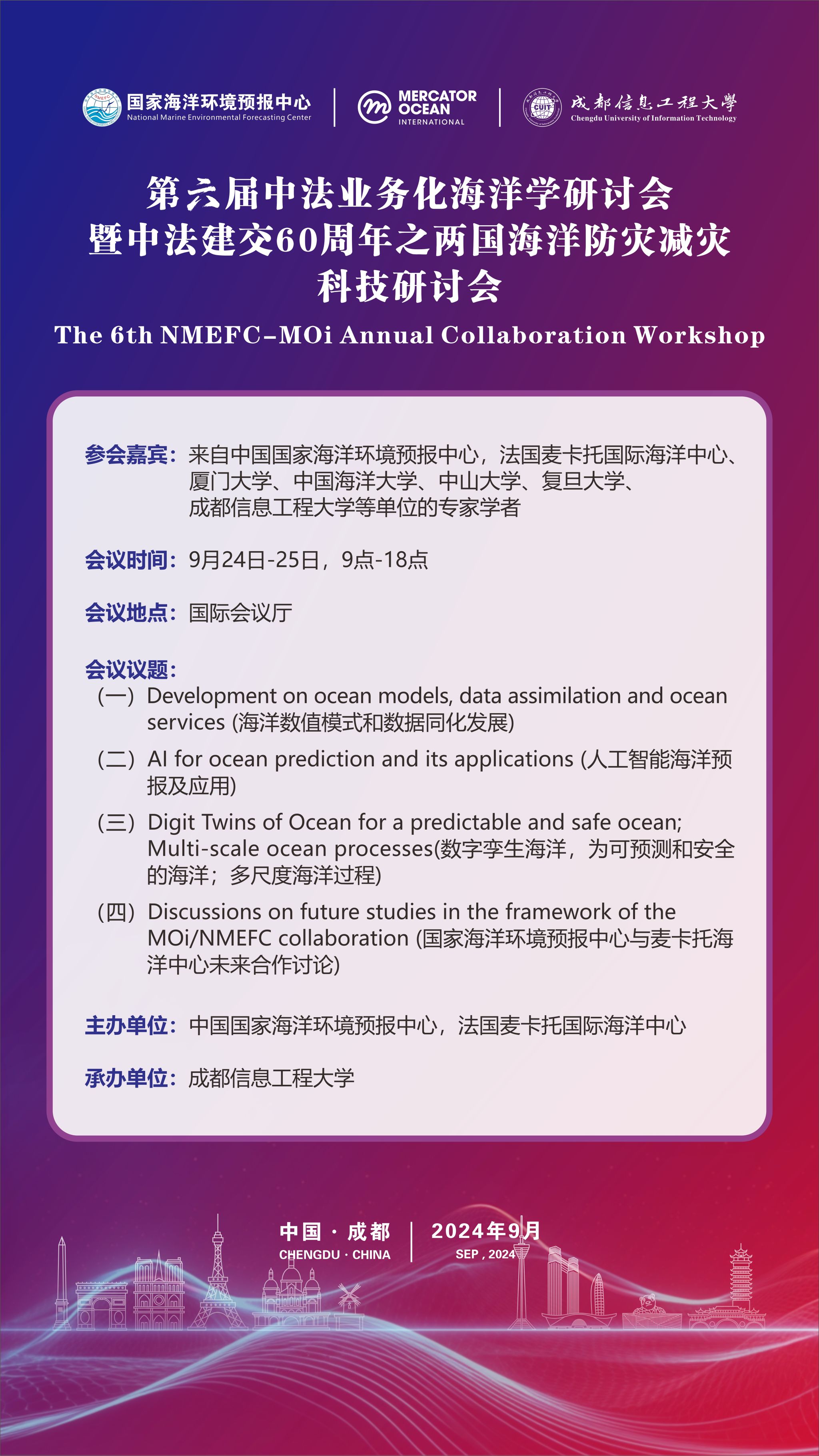 第六届中法业务化海洋学研讨会暨中法建交60周年之两国海洋防灾减灾科技研讨会预告