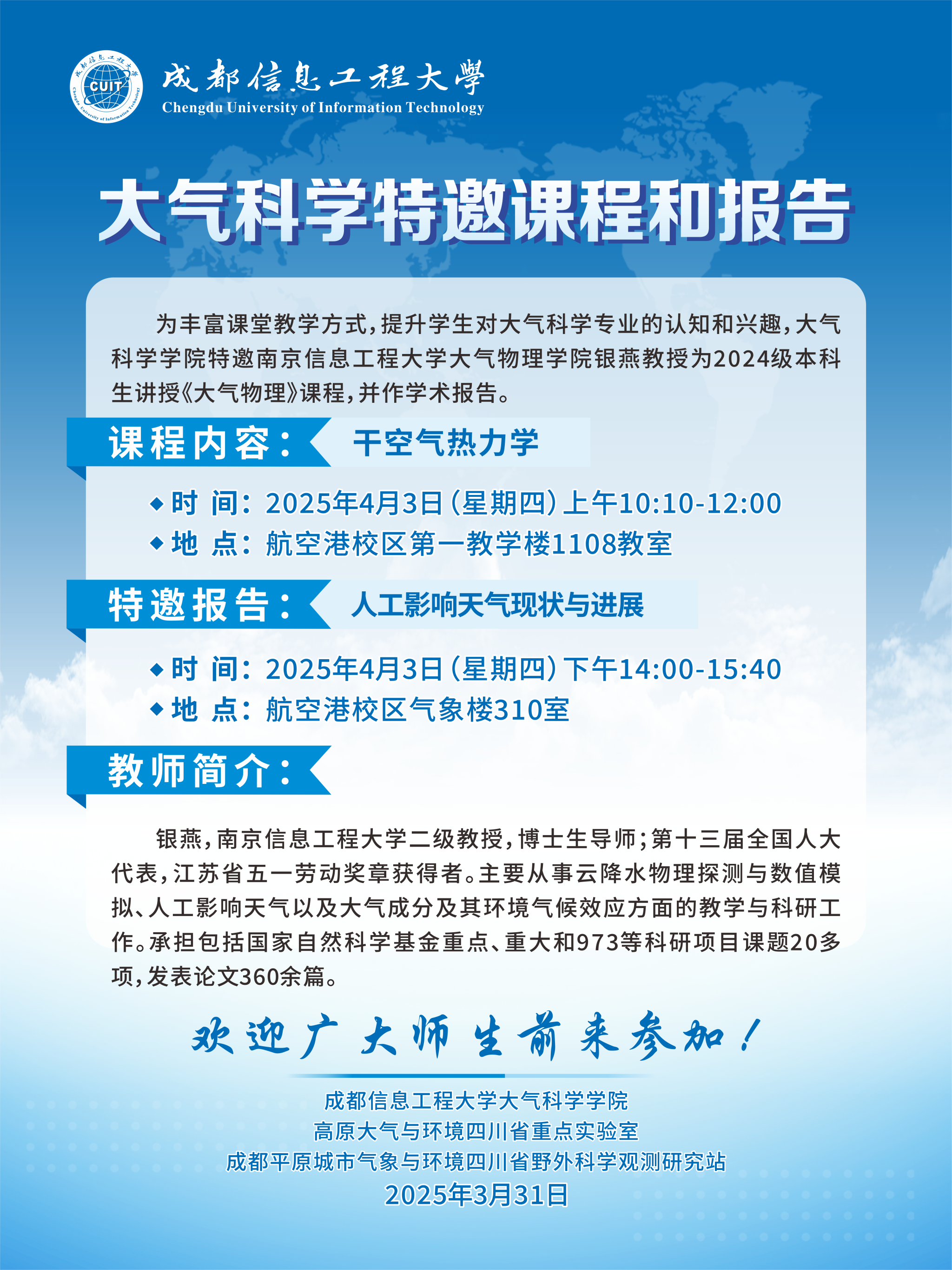 【学术讲座预告】干空气热力学/混合相层状云粒子分布特征及相态转化机制研究
