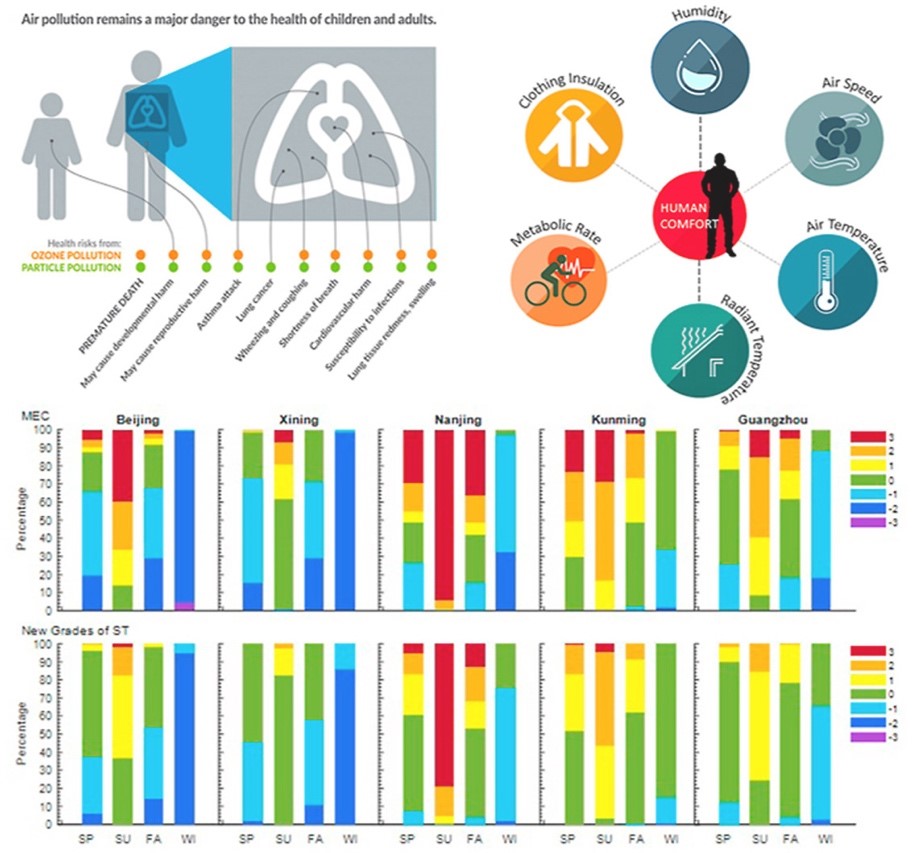 近年来,诸多研究指出空气污染物对人体造成重大危害,气象要素对人的健康影响显著,但是两者的协同作用如何量化?这一直是学界探讨研究的热点和难点问题。该研究正式提出一种经过纬度与海拔订正、综合考虑气象要素与空气污染协同效应的局地气象环境舒适度(Meteorology and Environment Comfort, MEC)完整评估算法,并以北京、西宁、南京、昆明、广州五座中国不同地理位置的城市进行了典型个列分析,研究结果显示该方法对局地综合强环境舒适度量化评估效果良好。