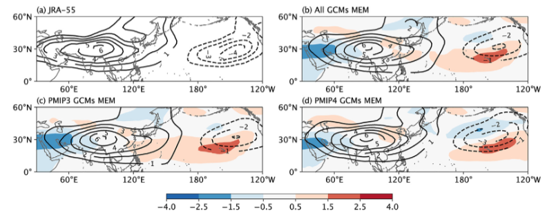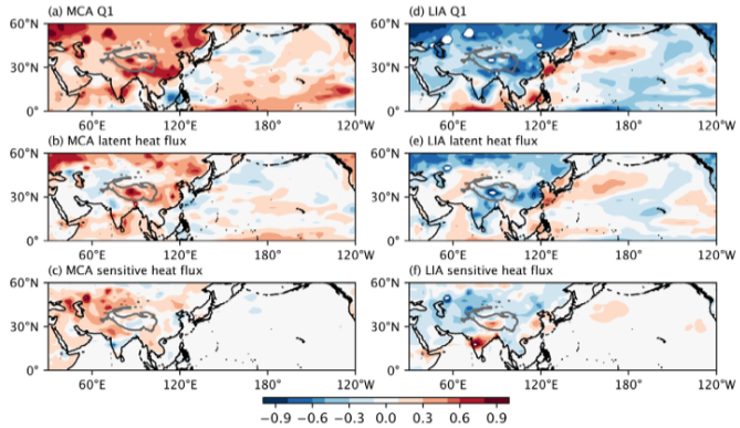 气候与气候变化团队杨凯晴博士和华维教授等采用国际古气候模拟比较计划第3和4阶段13个模式(PMIP3和PMIP4)输出结果评估了各模式对近几十年来APO的气候态和年际变化模拟能力,并对过去千年APO变化特征进行了分析。结果估表明,相关模式能较好再现夏季APO的气候态、垂直结构和年际变化。在上一个千年期间,APOI呈现出显著的下降趋势,中世纪暖期MCA(小冰期LIA)平均的APO指数相对于整个千年更大(更小)。在暖/冷期,东亚地区的APO变化可能与青藏高原加热和东亚夏季风引起的凝结潜热异常有关,而北太平洋地区APO指数的变化则可能由干绝热加热和潜热加热受抑制造成。此外,APOI存在约5年的显著年际尺度周期。