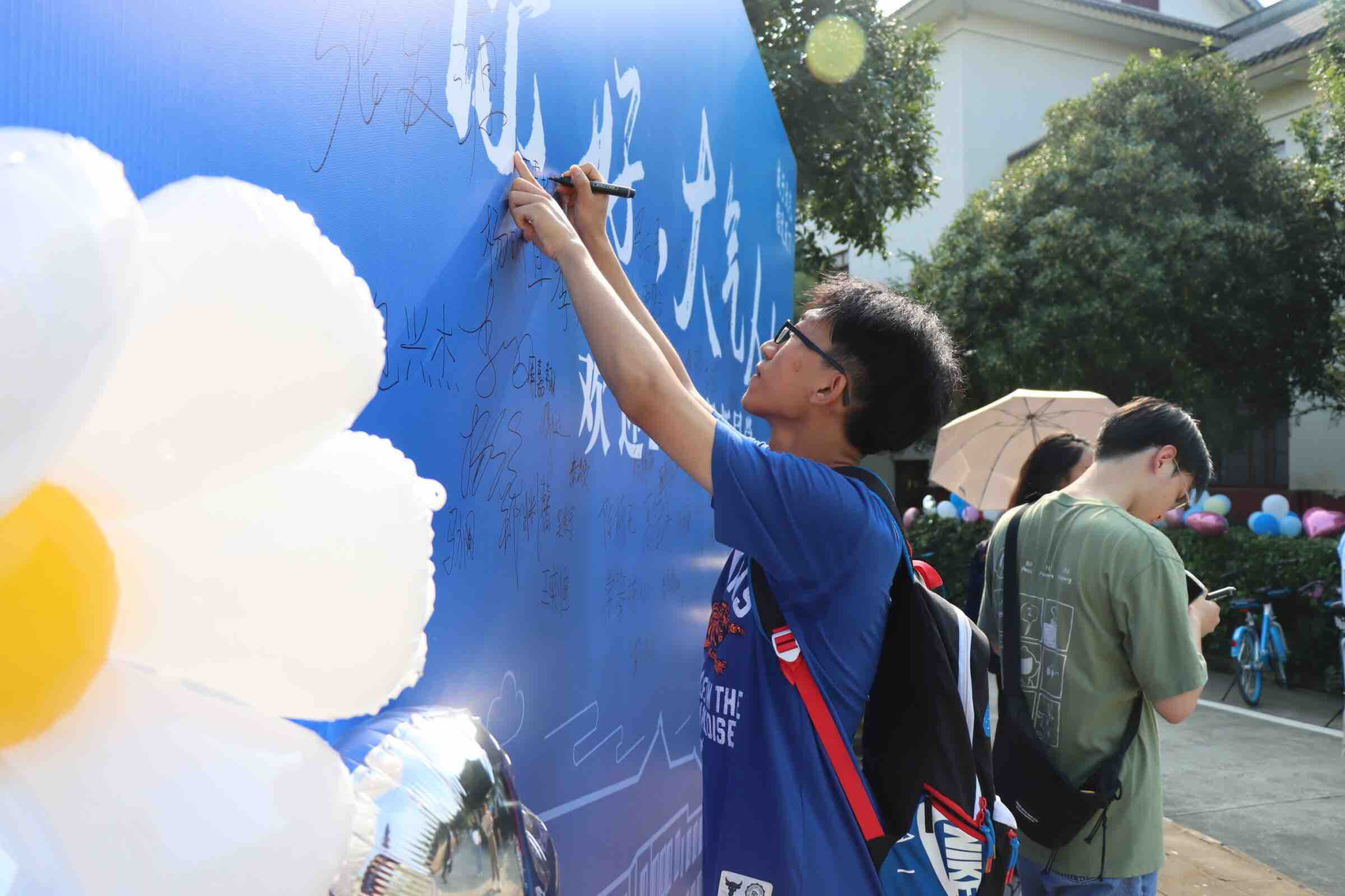 精心布置了迎新展牌、入学流程牌、丰富的介绍资料等等物料,只为新生能够轻松、快捷、便利入学。