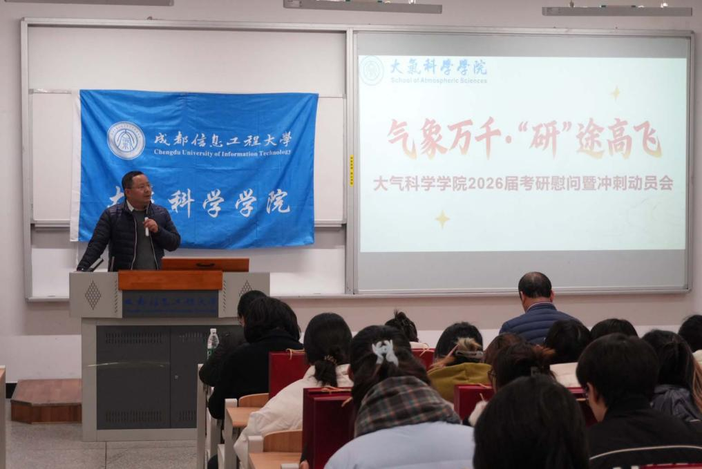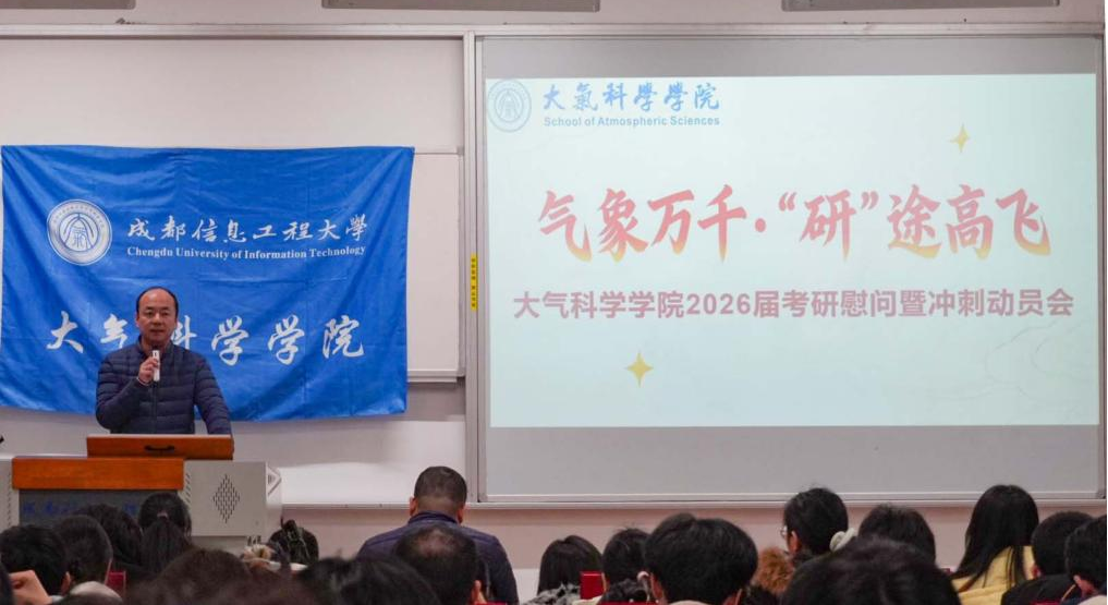 在H1101教室举办“气象万千·研途高飞”2026届考研慰问暨冲刺动员会,为即将踏上考场的学子们送上暖心的关怀与诚挚的祝福。KS体育