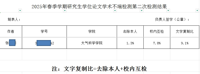 2025年春季学期研究生学位论文学术不端检测第二次检测结果