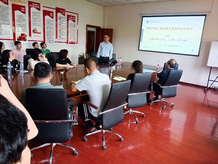 周顺武教授的报告介绍了青藏高原作为气候变暖的敏感区,其变暖幅度相较于周边地区更为显著,详细阐述了影响高原夏季地面气温年际变率和年代际增暖的驱动因子及影响机制的相关研究进展。报告中还揭示了巴伦支-喀拉海春季海冰和夏季北极涛动影响高原夏季地面气温的主要途径;证实了PDO位相变化可显著调控夏季AO与高原地面气温的联系;表明了20世纪90年代末期PDO和AMO的反位相转变在高原夏季快速增暖中的作用。会后,我校在场师生与周顺武教授开展了深入讨论交流。周顺武教授还分享了其作为国内外多部气象期刊审稿人的审稿经验和投稿注意事项,以及各种论文写作的规范和常见的一些错误等,得到了现场师生们极大的认同和反思。