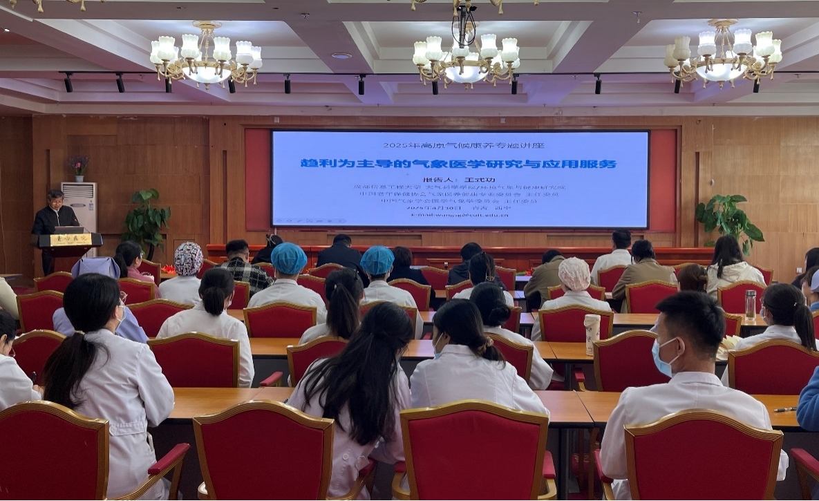 4月30日,团队应邀前往青海省心脑血管病专科医院进行交流,西宁市政府、市卫生健康委、心脑血管病专科医院的多位领导与专家参会。王教授围绕《趋利为主导的气象医学研究与应用服务》主题进行报告,并与多位医学专家就高原低氧适应、高原康养内涵进行了深入交流,现场反响热烈。